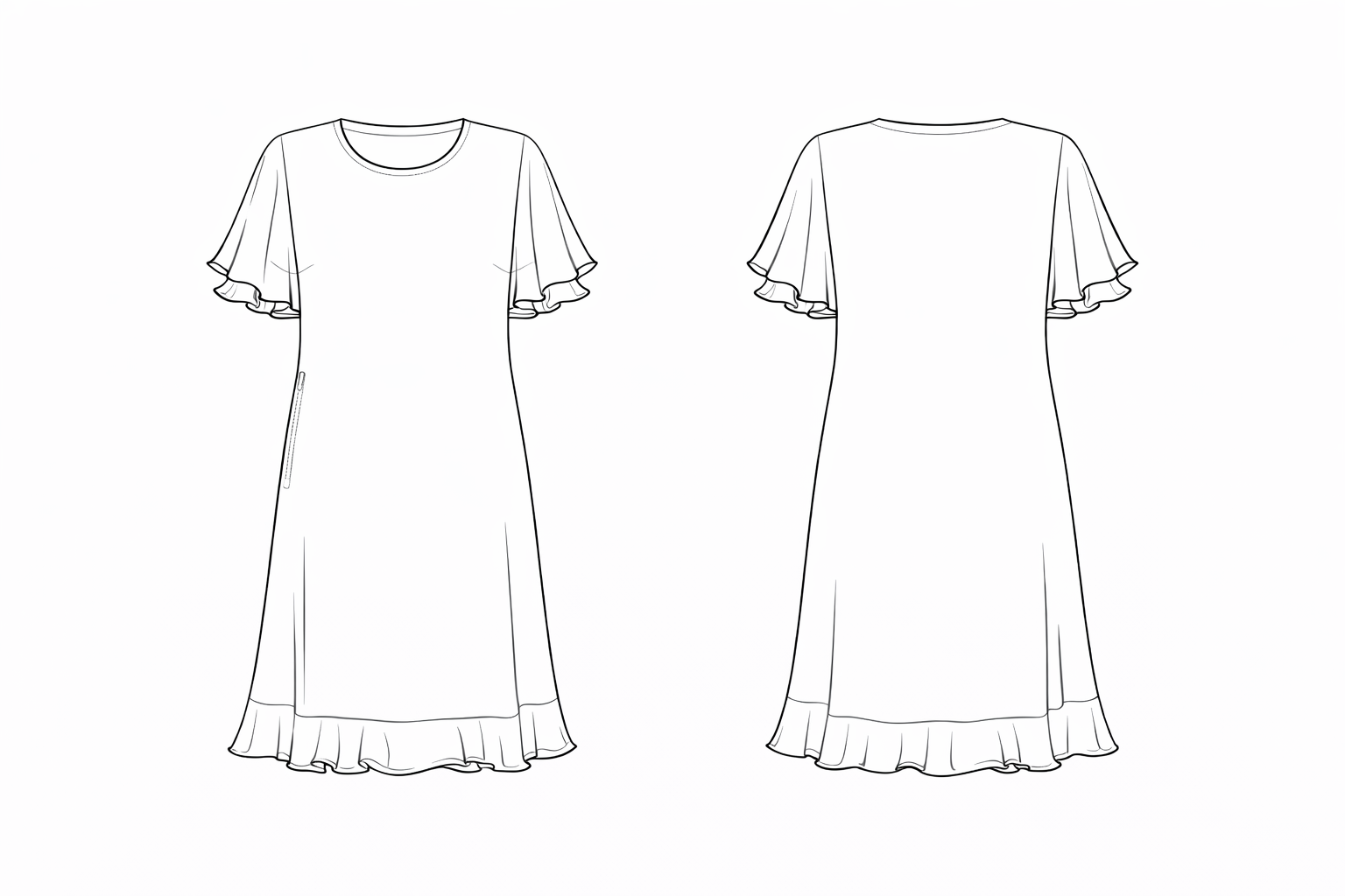 Der lockere Schnitt sorgt für ein angenehmes Tragegefühl und eine schmeichelnde Silhouette. Die zarten Volantärmel und der leicht transparente Saum verleihen dem Kleid eine feminine, sommerliche Leichtigkeit.