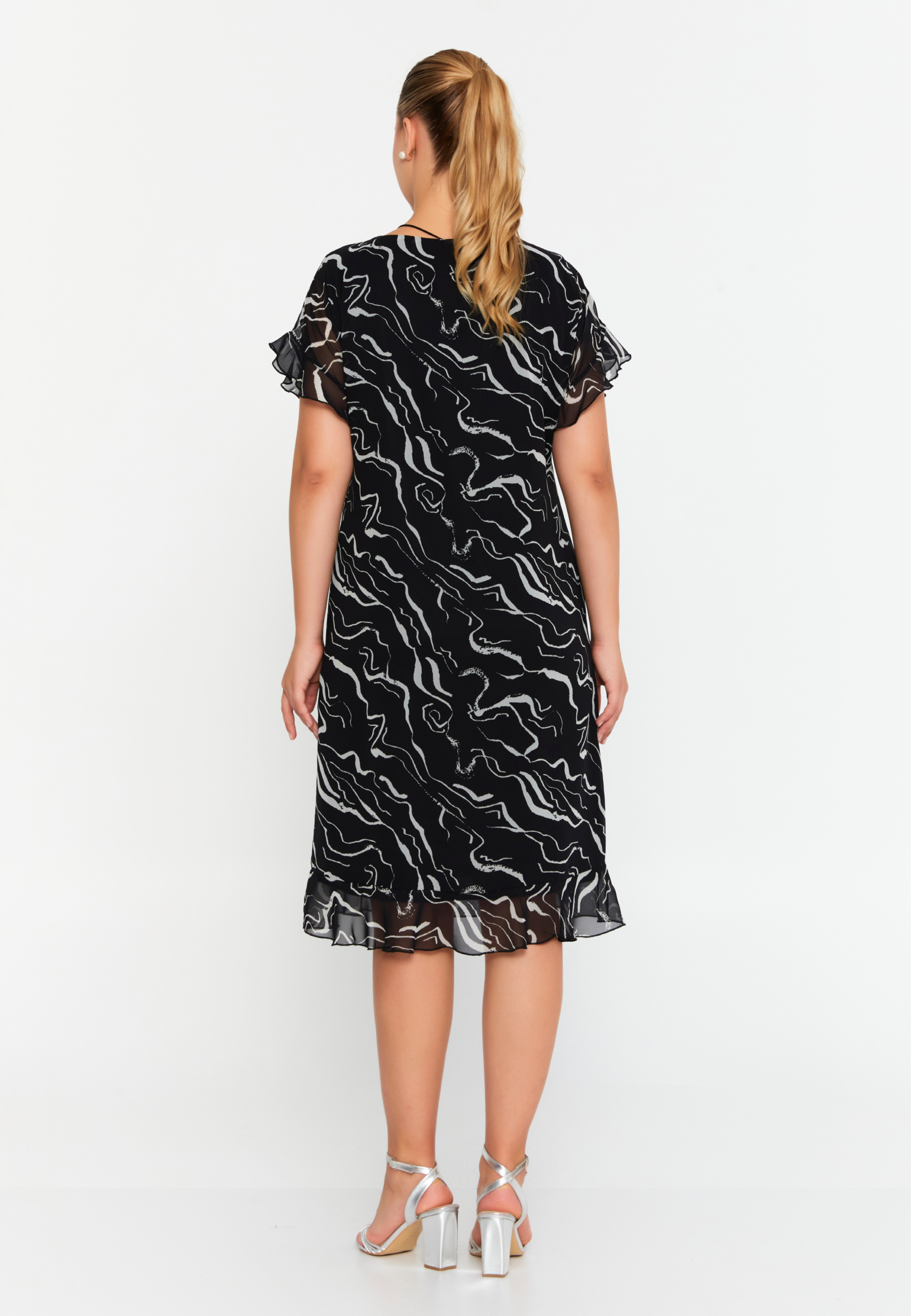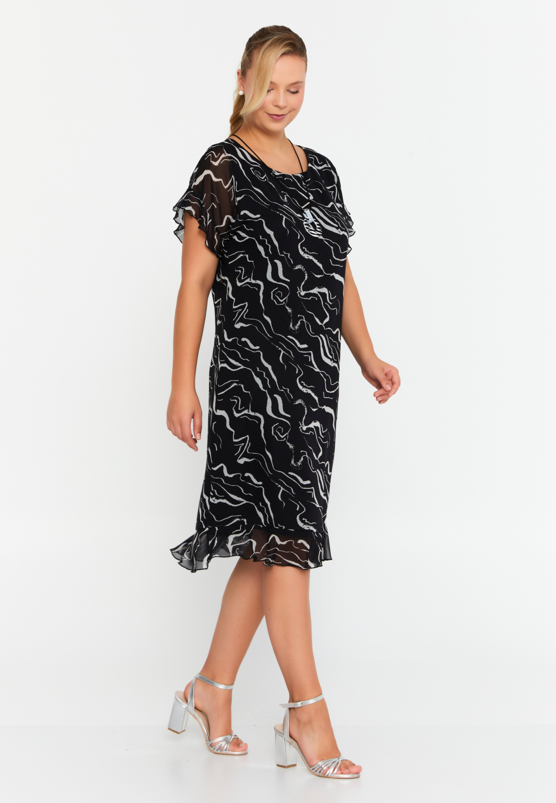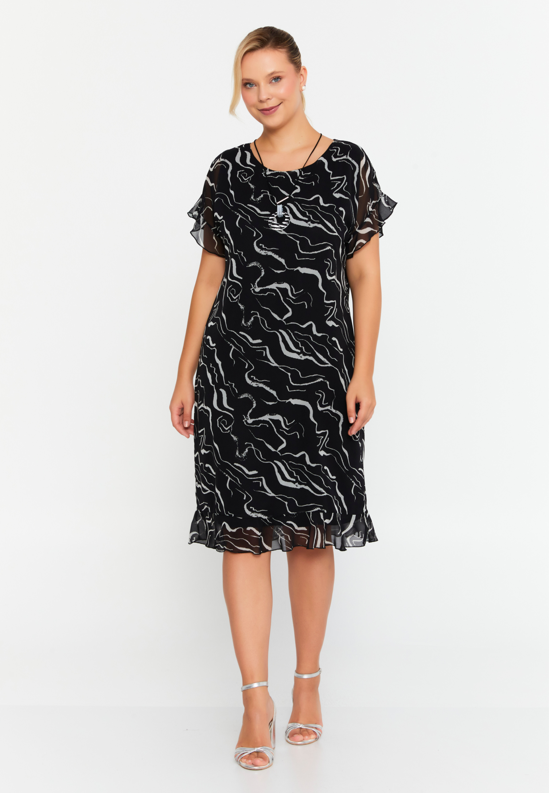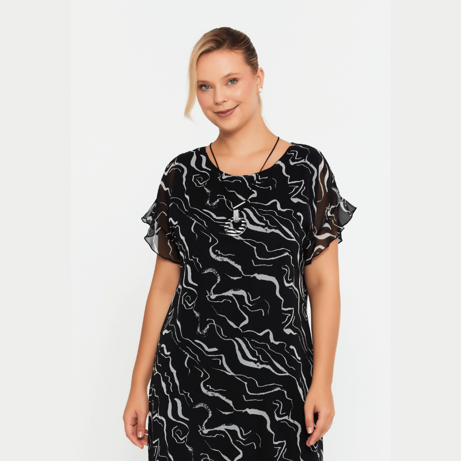 Ein leichtes, fließendes Kleid in eleganter Chiffon-Qualität mit modernem abstrakten Print.